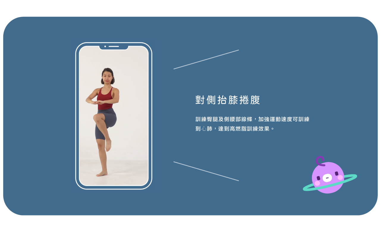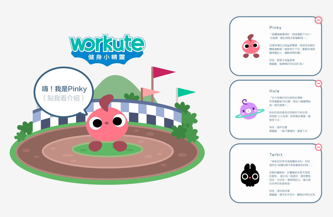 為傳達良好的品牌形象,特別設計與網站主題內容相符的情境主視覺,可愛童趣的版面風格,完全打破市面上偏向陽剛健身的刻板印象,網頁中亮相的小精靈是APP中陪伴用戶透過運動養成的寵物角色,搭配呼籲立即行動文案,讓網頁不再是單調的企業介紹,而是充滿畫面感的最佳宣傳門面,成為推動居家健身的驅動力。