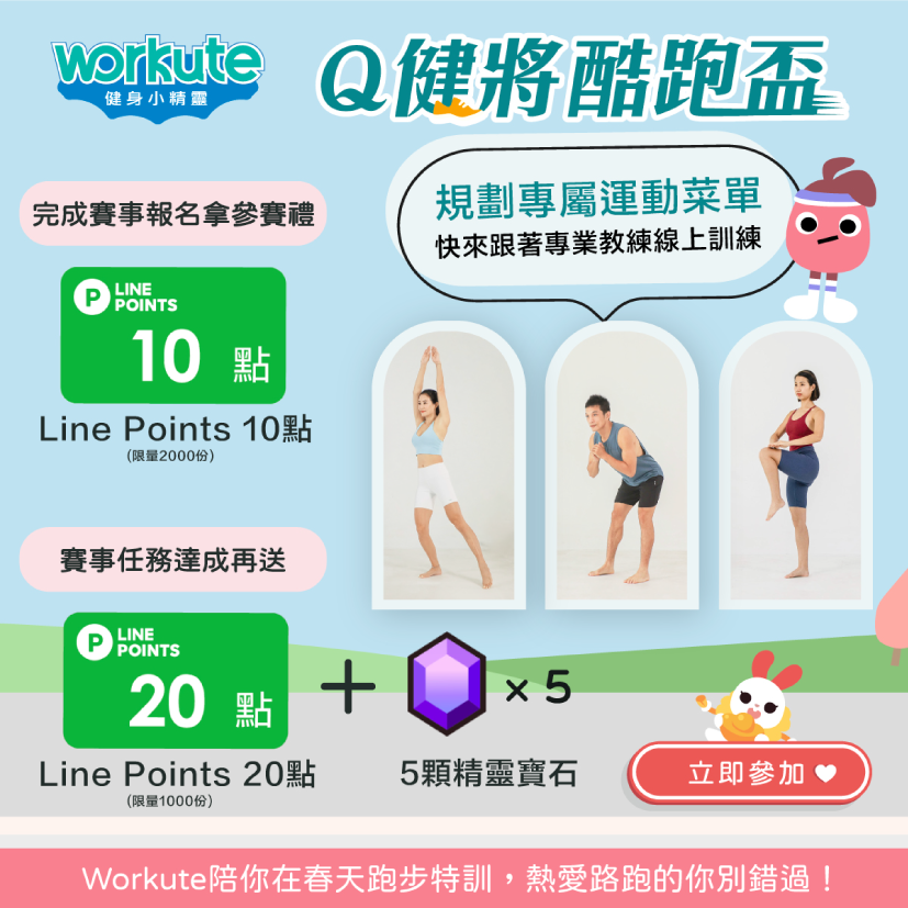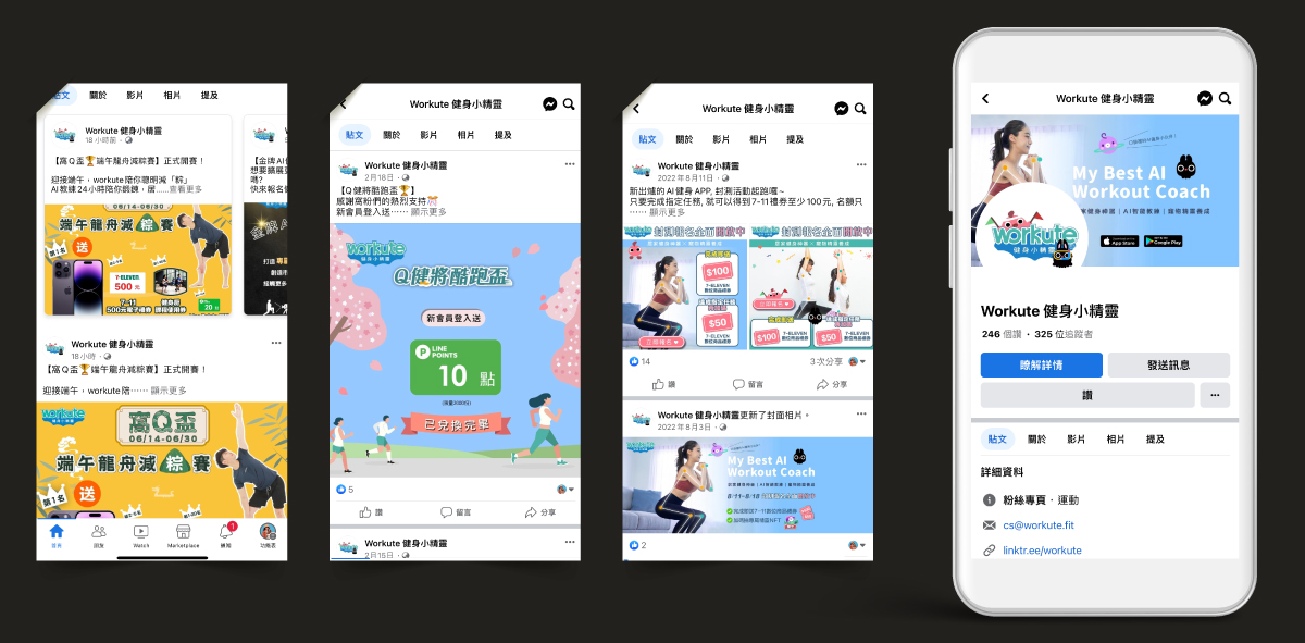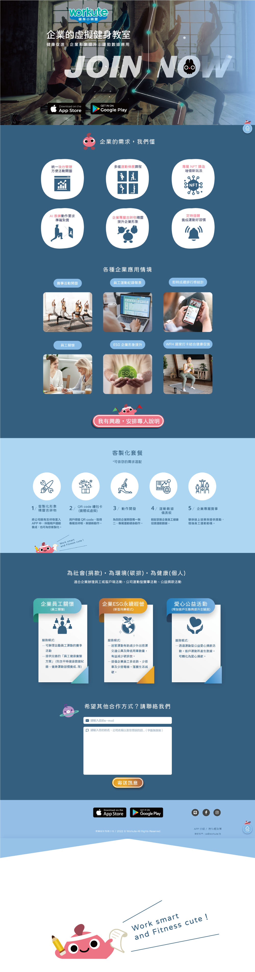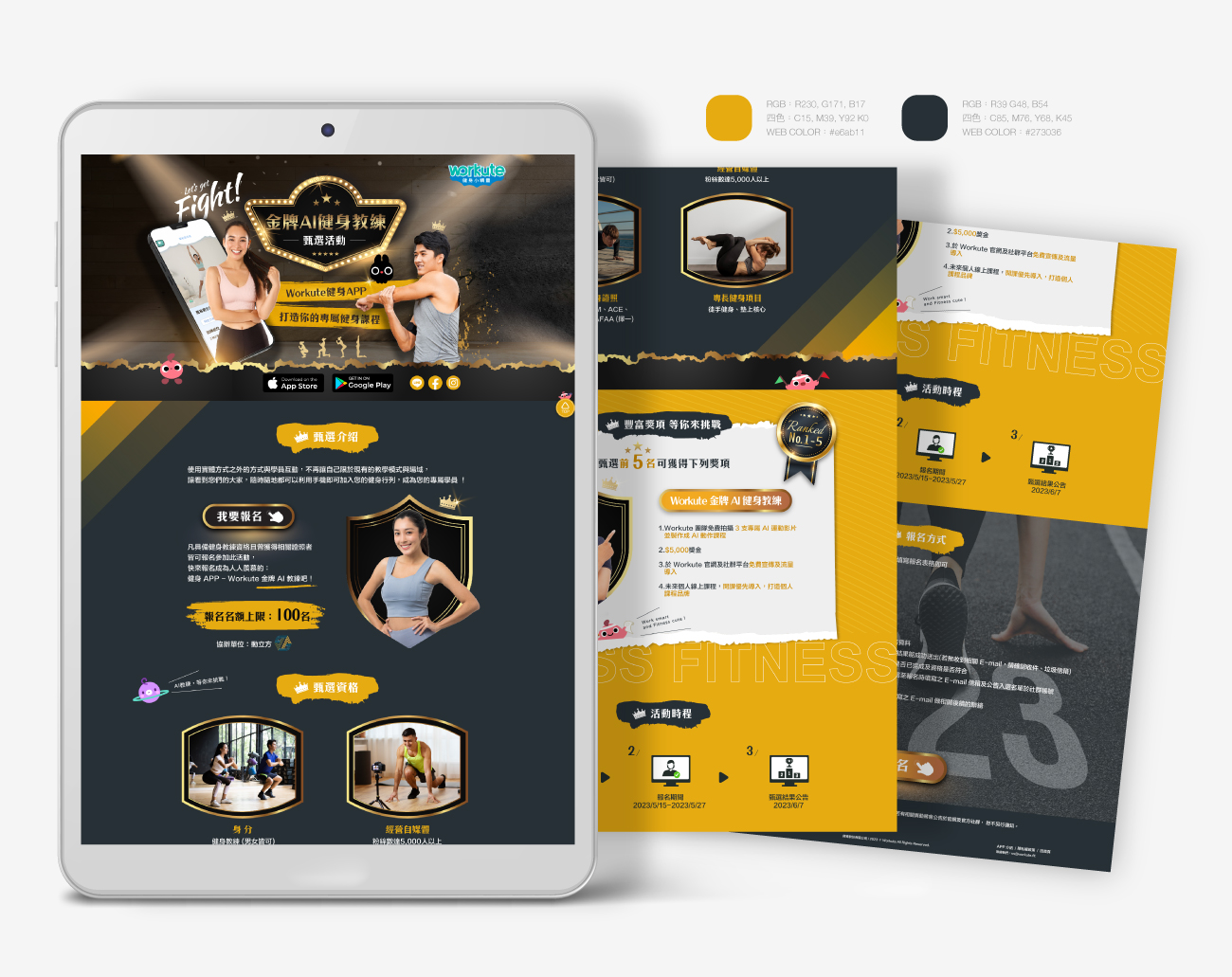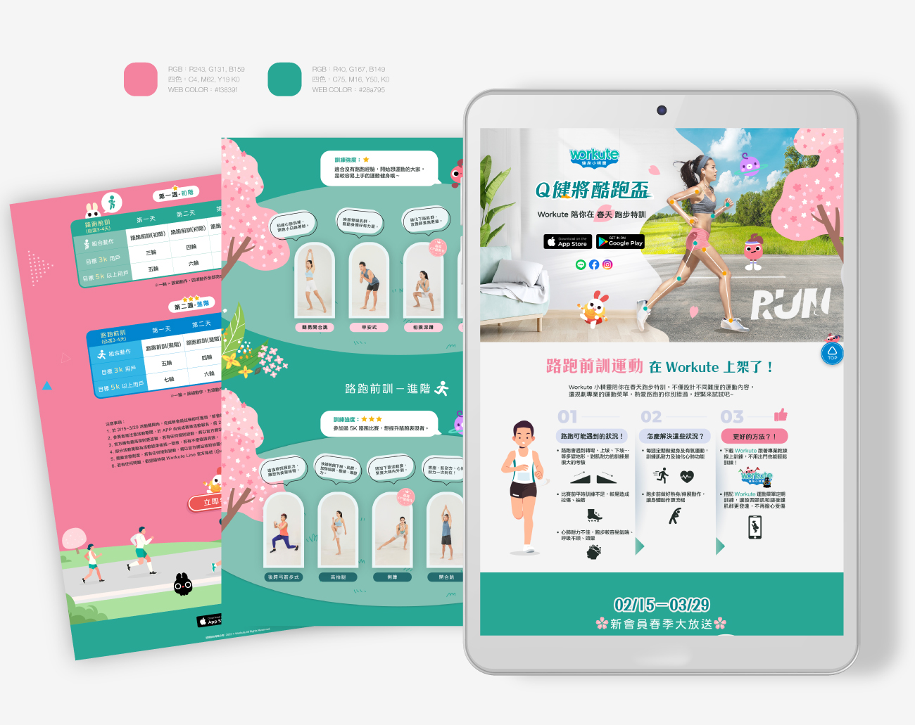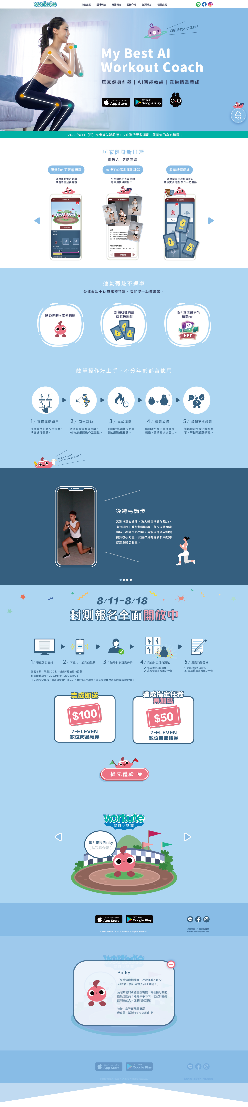 Workute APP已於2022年7月上線,同時進行活動推廣,齊力團隊負責建置對外的行銷管道,如:活動官網、廣告投放,並完成封測與檔期活動設計及廣宣,提升了用戶使用率與平台曝光度。